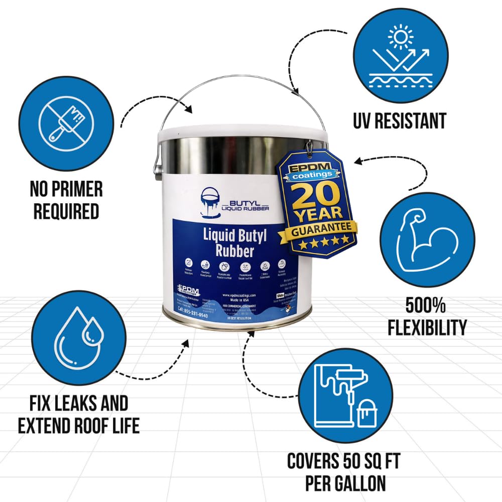 Liquid Butyl Rubber is a specially formulated version of Butyl sheet rubber that has the flexibility needed for change in environmental conditions.